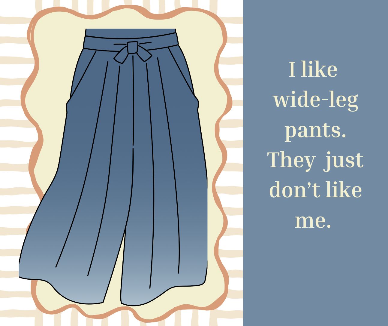 Wide-leg pants don’t seem to fit